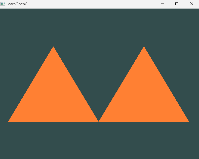 // now when we draw the triangle we first use the vertex and orange fragment shader from the first program