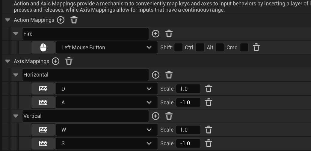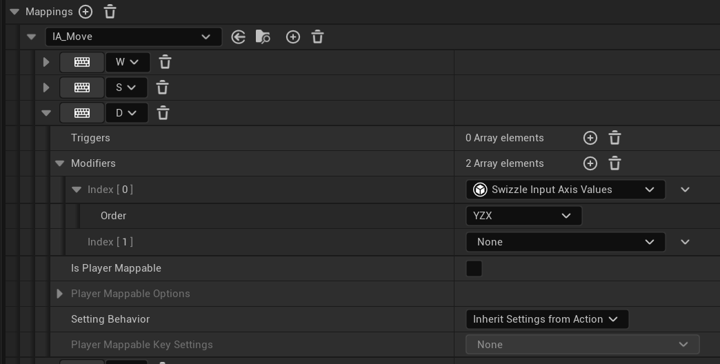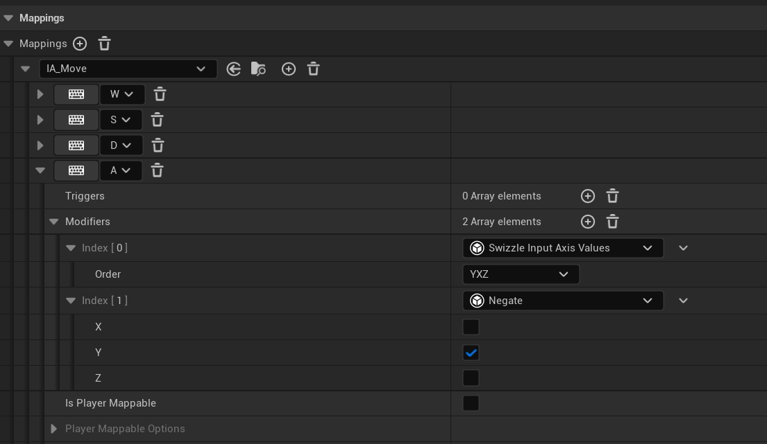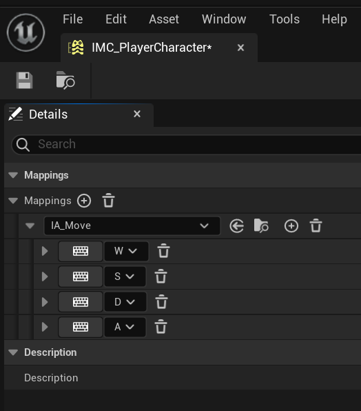 입력이 들어오면 인풋 매핑 컨텍스트에서 인풋을 인풋 액션과 대응시켜준다.(ex) w를 누르면 move와 대응)