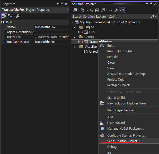 4. sln에서 본인의 프로젝트 우클릭 -> Set as Startup Project 클릭