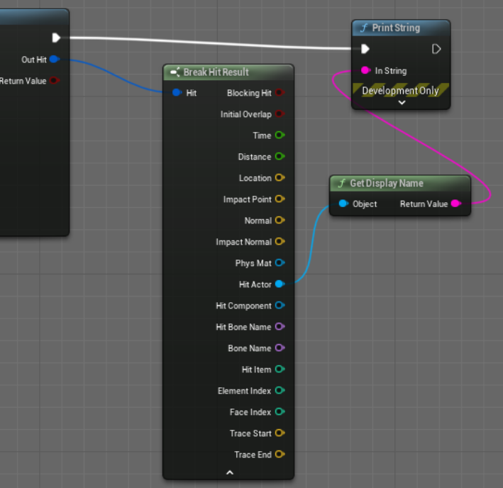 break는 ray에 부딪힌 것들의 정보를 분리해서 가져올 수 있다. 예시에서는 부딪힌 액터의 이름을 가져와서 print 해준 예제
