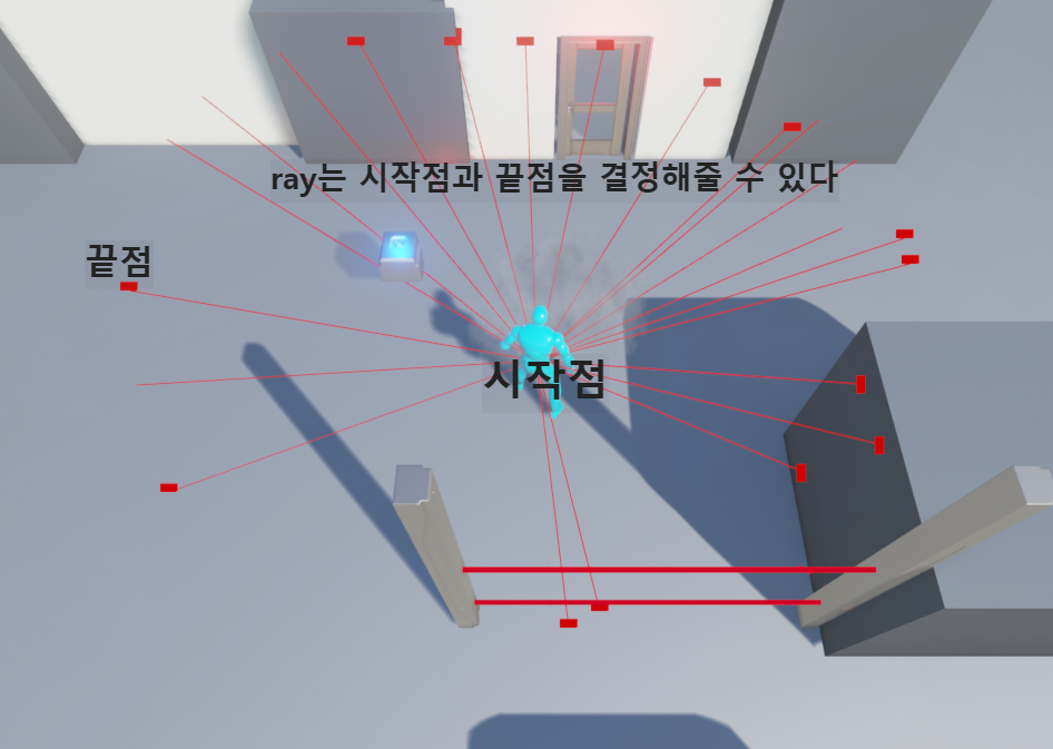 개발자는 오브젝트마다 채널을 달 수도 있고 트레이스 라인에 따라 반응을 어떻게 할지 결정함으로써 라인트레이스를 사용할 수도 있을 것이다.