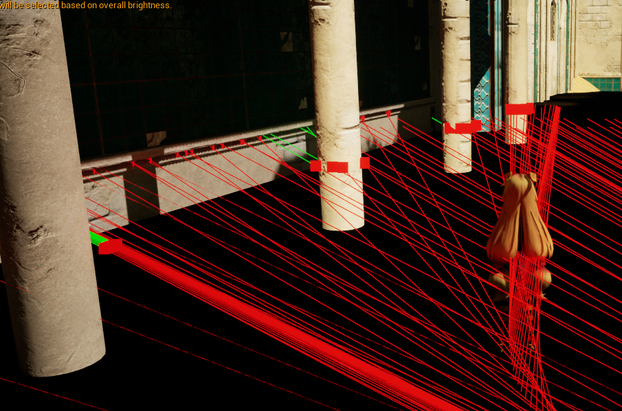 플레이어로부터 1500 거리 정도 되는 레이트레이싱을 쏘는 예시