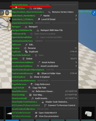 ontextMenu.MetaSoundSource', 'MainFrame.MainMenu', 'MainFrame.MainMenu.Help', 'LevelEditor.LevelEditorToolBar.AddQuickMenu', 'LevelEditor.ActorContextMenu', 'AssetEditor.SkeletonEditor.ToolBar', 'LevelEditor.ActorContextMenu.AssetToolsSubMenu', 'LevelEditor.MainMenu.Tools', 'SourceControl.ChangelistContextMenu', 'ContentBrowser.AssetContextMenu.ImgMediaSource', 'ContentBrowser.AssetContextMenu', 'ContentBrowser.DragDropContextMenu', 'AssetEditor.AnimationEditor.ToolBar', 'LevelEditor.LevelEditorToolBar.ModesToolBar', 'ContentBrowser.AssetContextMenu.AssetActionsSubMenu', 'LevelEditor.InViewpor