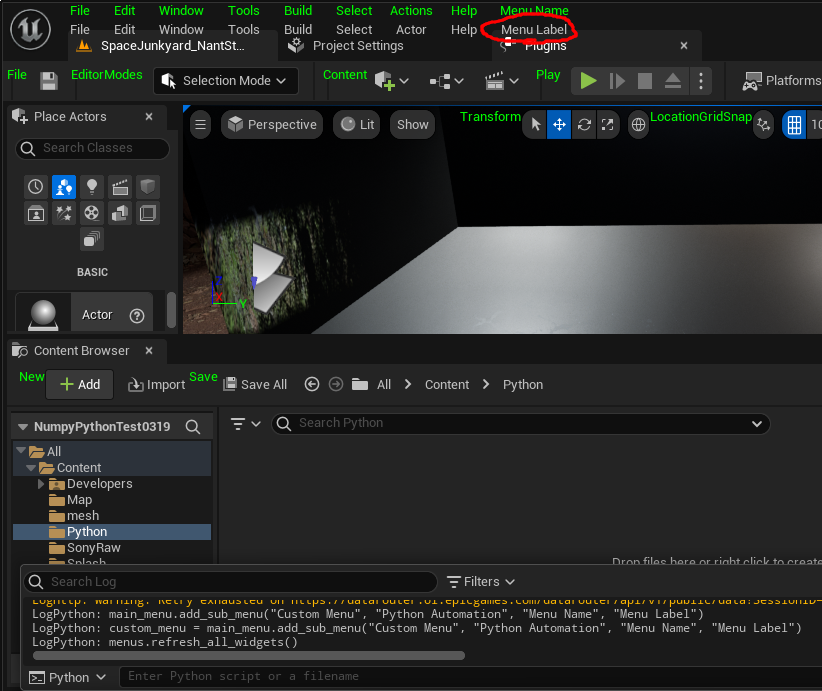 LogPython: menus = unreal.ToolMenus.get()