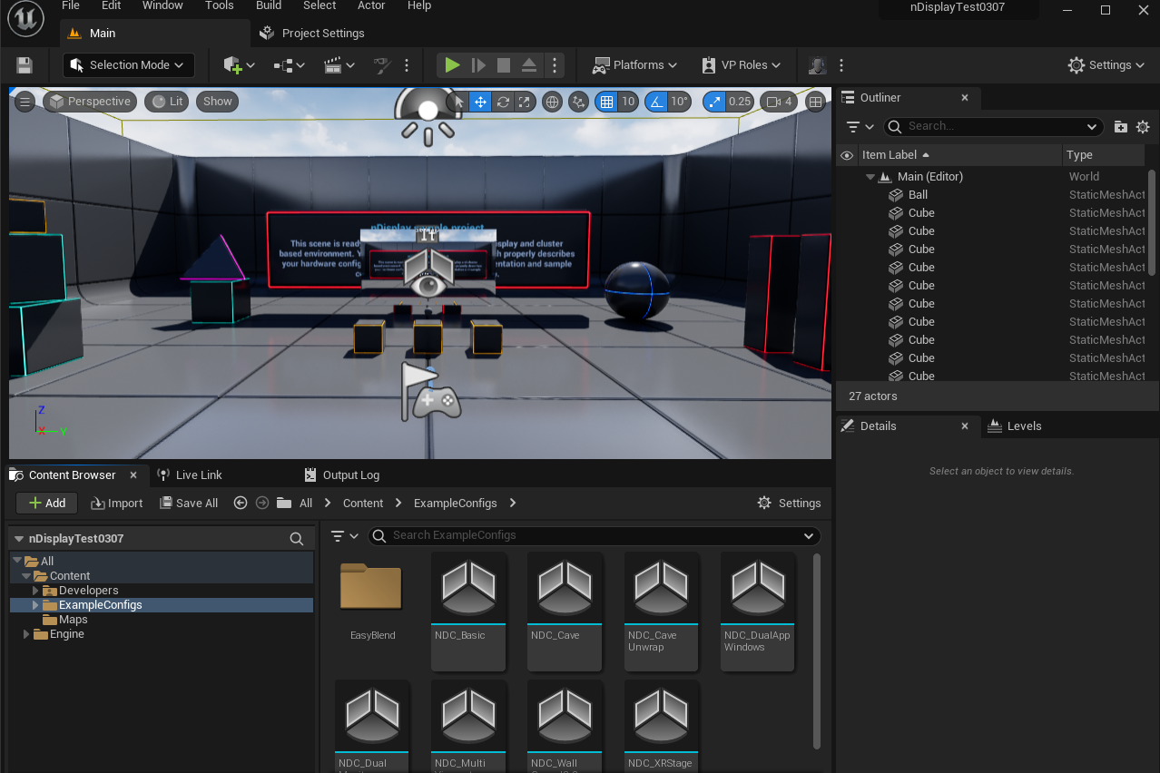 2. 프로젝트는 아래와 같이 구성되어 있으며, ExampleConfigs에 들어가면 다양한 nDisplay 예제들을 확인할 수 있다.