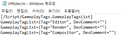<필히 숙지> 만약 리스너의 로그가 Z:\MyProject\Config\Tags 여기에 VPRole.ini file 이 없다는 에러로그가 뜨게 되면 해당 경로에(Tags 폴더가 없으면 만들어주어야 함)